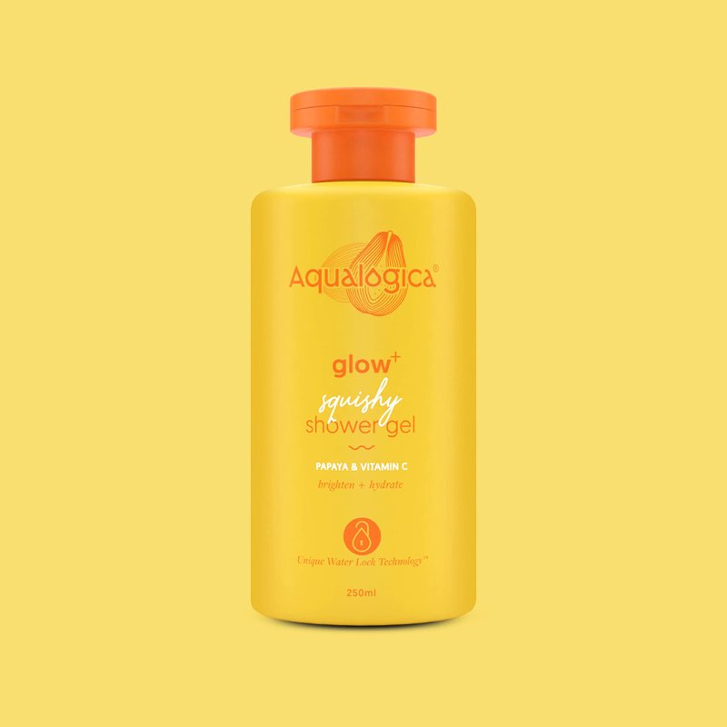 Aqualogica Body Wash Glow+ Squishy Shower Gel with Papaya & Vitamin C for Dry, Oily, & Hydrated Skin for Men & Women -250ml
