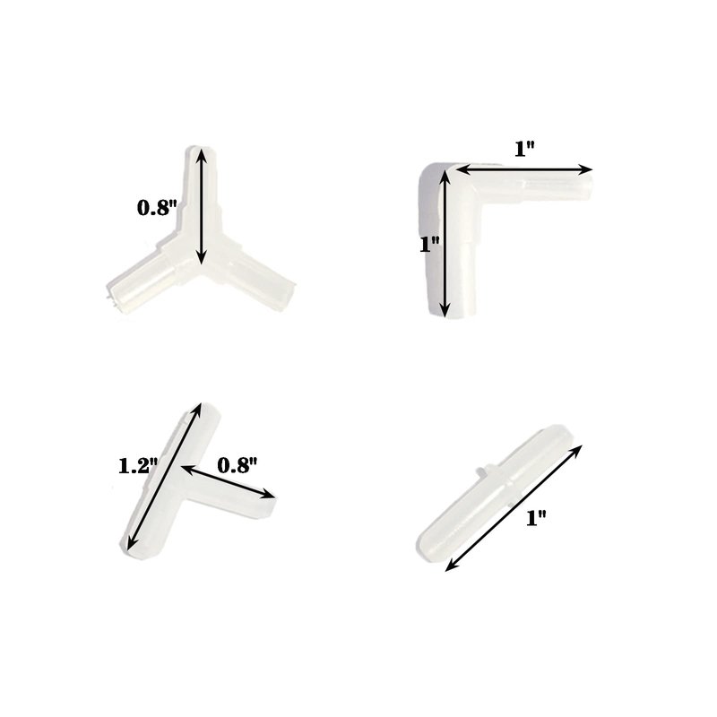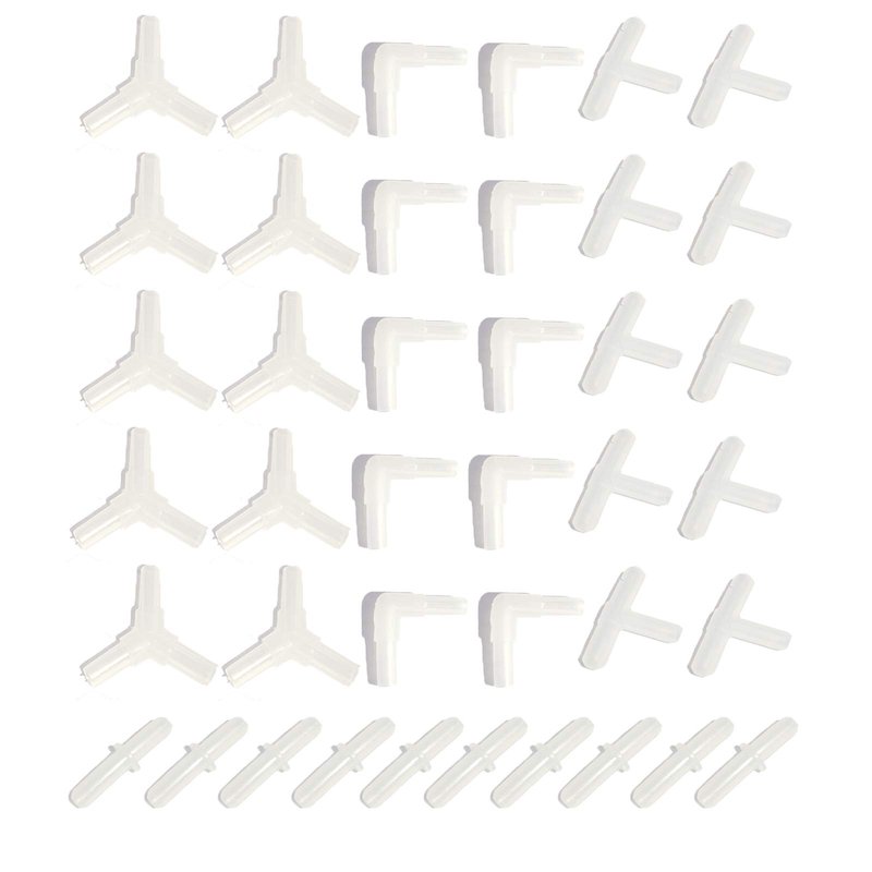- Includes: 10pcs T connectors,10pcs straight connectors, 10pcs Y connectors,10pcs elbow connectors