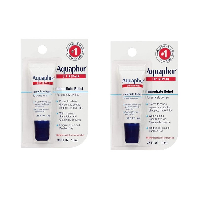Aquaphor Lip Repair Ointment - Long-lasting Moisture to Soothe Dry Chapped Lips - .35 fl. oz Tube, 2 Pack