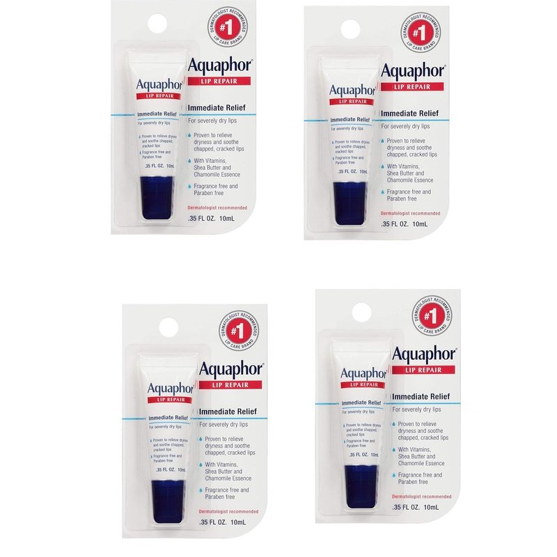 Aquaphor Lip Repair Ointment - Long-lasting Moisture to Soothe Dry Chapped Lips - .35 fl. oz Tube, 4 Pack
