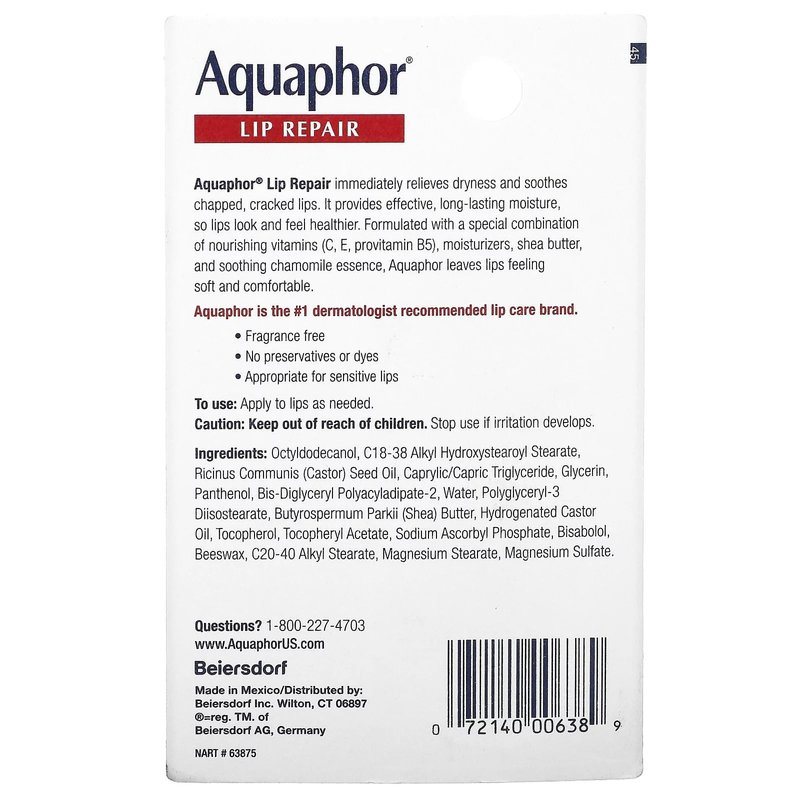 Aquaphor Lip Repair provides instant and lasting hydration. There is no doubt that this ultra-concentrated ointment packs a powerful punch of healing ingredients that will transform your pout from parched to plush in just one use.