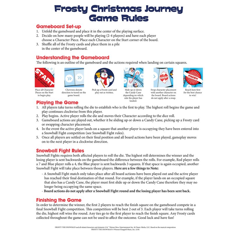 - YOUR FAVORITE ADORABLE SNOWMAN: Enjoy this entertaining Frosty board game with friends and family as you journey across this Frosty themed board game packed with imagery of this famous and iconic Snowman, Frosty