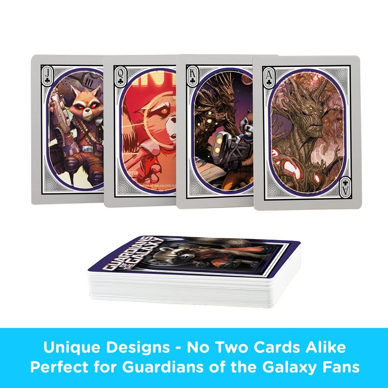 - PLAYING CARD DECK INCLUDES MULTIPLE IMAGES: This Guardians of the Galaxy comic deck of playing cards includes multiple images of Rocket & Groot. Loaded with imagery and designed for fun for fans and players alike.