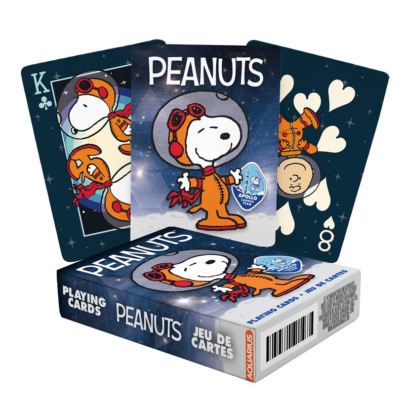- SNOOPY IN SPACE DECK OF PLAYING CARDS: Put on your space suit and explore the big galaxy with your favorite space travelers from Peanuts! Each card captures the charm and cheer of Charles M. Schulz’s classic comic strip