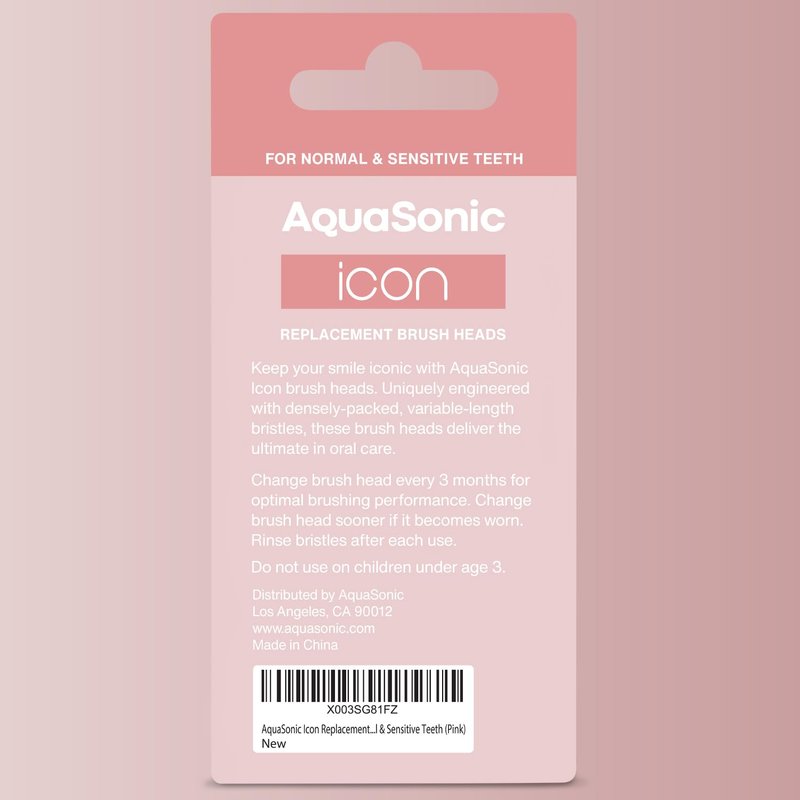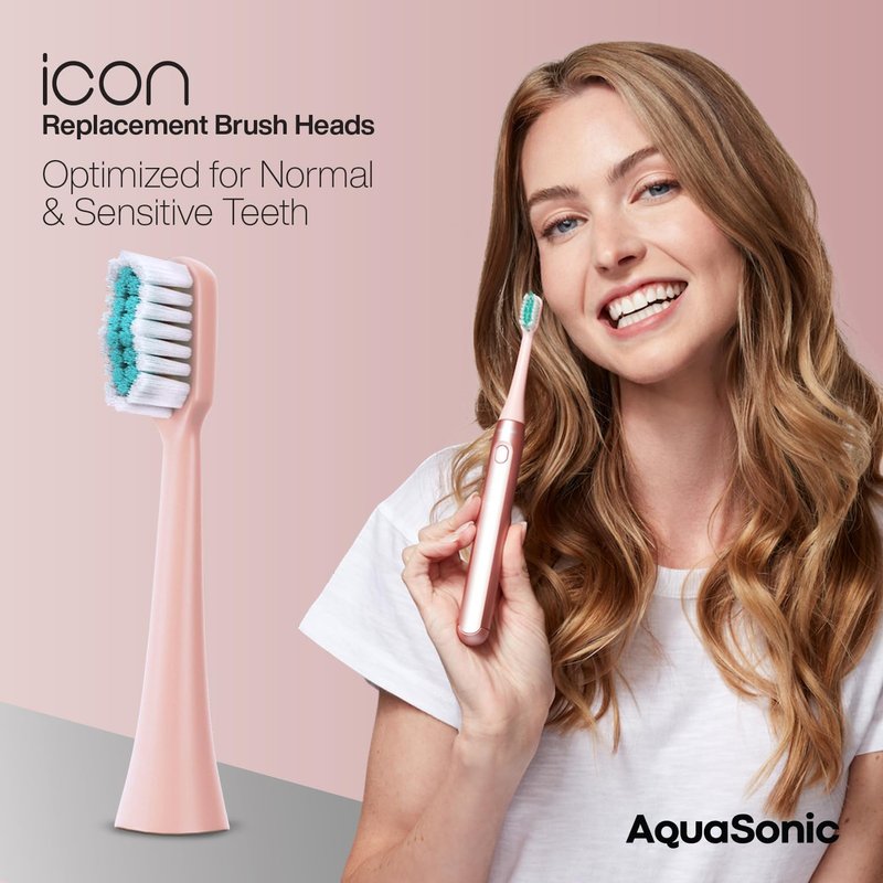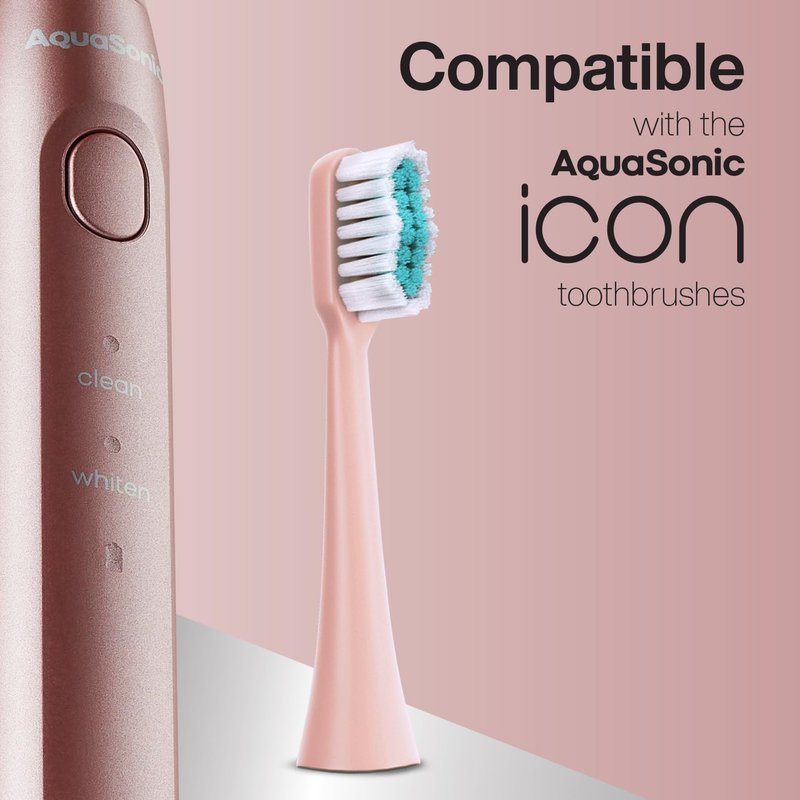 AquaSonic Icon Replacement Brush Heads | Compatible with AquaSonic Icon Toothbrush | 2 Brush Heads | for Normal & Sensitive Teeth (Blush)
