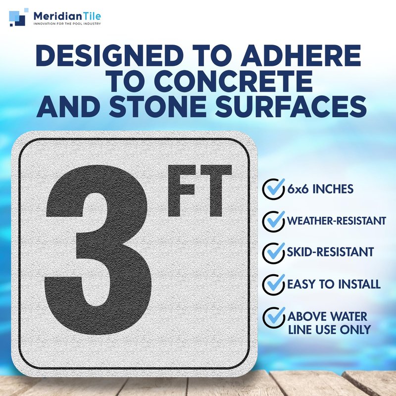 Aquatic Custom Tile, 3FT Pool Depth Markers, 6x6 Inches Vinyl Pool Stickers, Swimming Pool Number Markers, Pool Safety Signage, Adhesive Pool Depth Markers Stickers for Decks, MADE IN USA - (1 Pack)