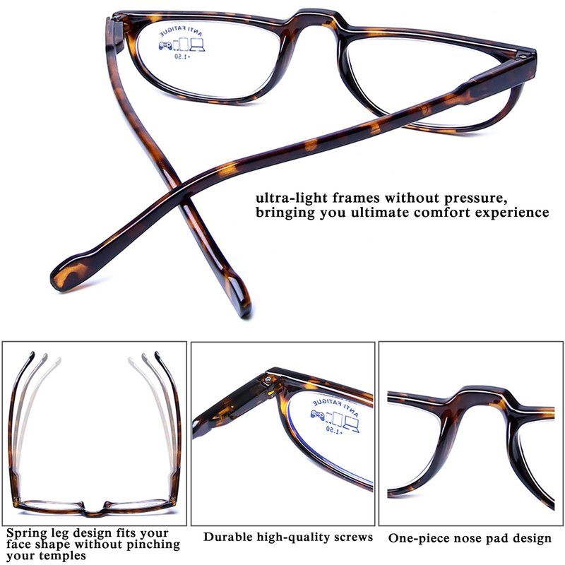 - 【VALUE PACK BROADER VISION】Half Moon Shape Reading Glasses allow you to look at distant objects without blocking the view; meanwhile, anti eye strain, causing your vision to deteriorate.Great price! Great for home, office, or outdoor use. Keep a pair at your desk, in your bag, and in your favorite reading spots. Never lose your glasses again!