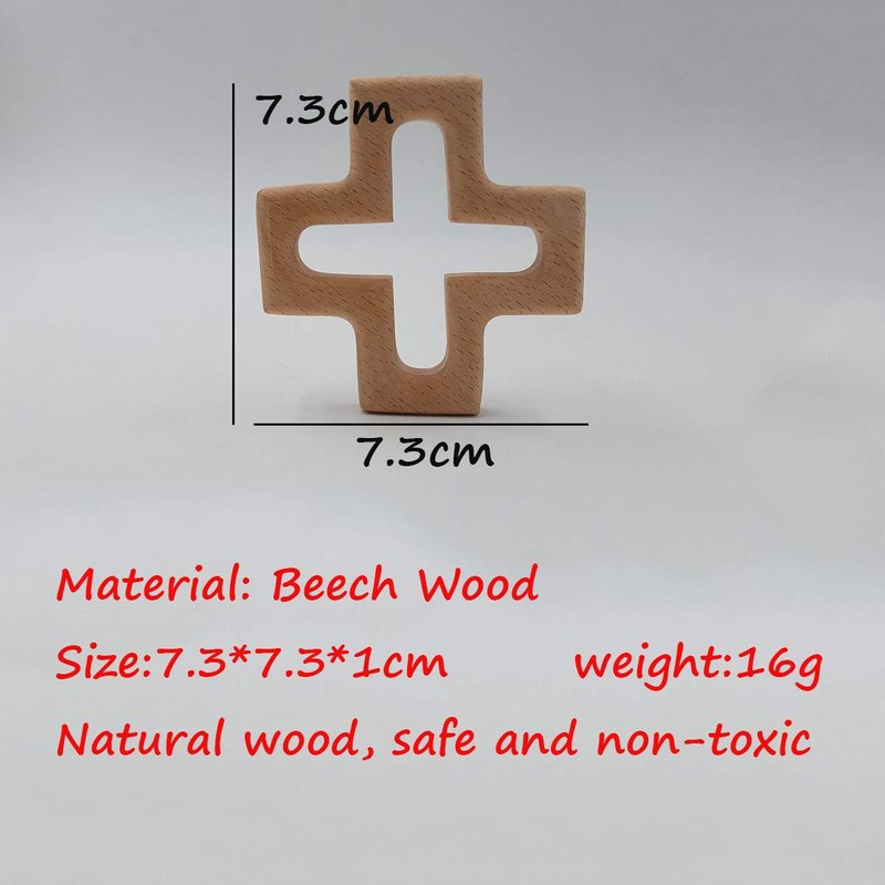 Arakierst 10pcs Organic Wood Cross Pure Natural Animal Shape Beech Wooden Handmade Grasping Pattern DIY Pacifier Chain Pendant