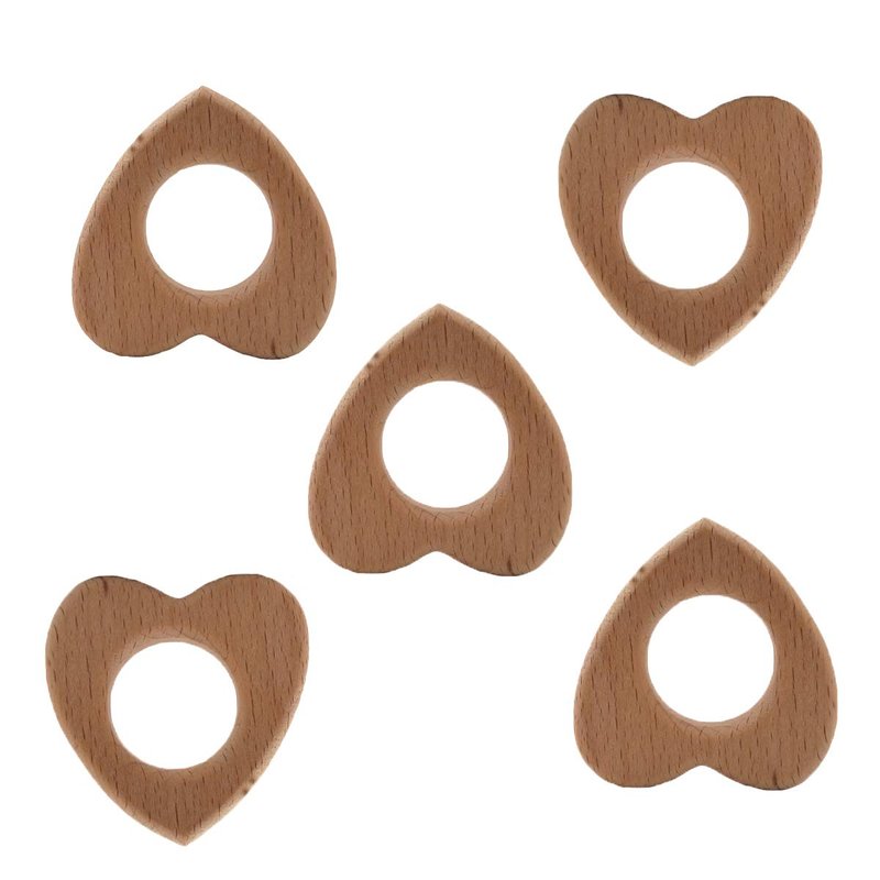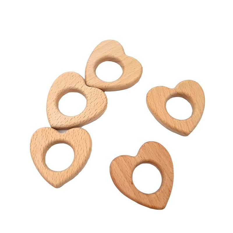 Arakierst 10pcs Organic Wood Heart Teether Pure Natural Animal Shape Beech Wooden Teether Handmade Grasping Pattern DIY Pacifier Chain Pendant