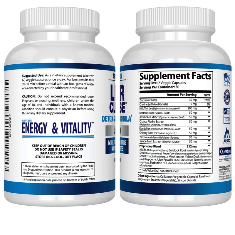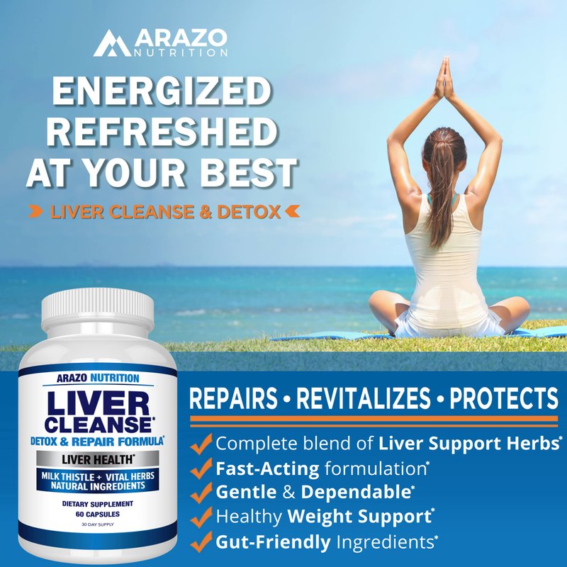 Arazo Nutrition Liver Cleanse Supplement - Potent & Natural 60 Herbal Pills - 30 Day Supply