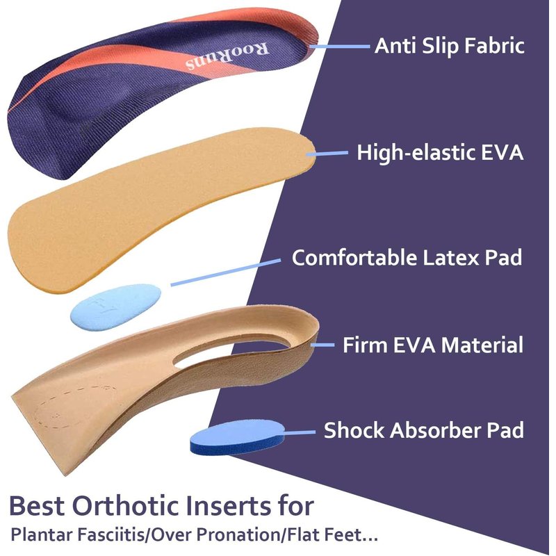 RooRuns 3/4 Orthotic Inserts, Arch Support Insoles for Over-pronation, Fallen Arches, Fat Feet, Foot Arch Support Insoles for Plantar Fasciitis, Heel Spurs, Bunions And Other Foot Conditions.