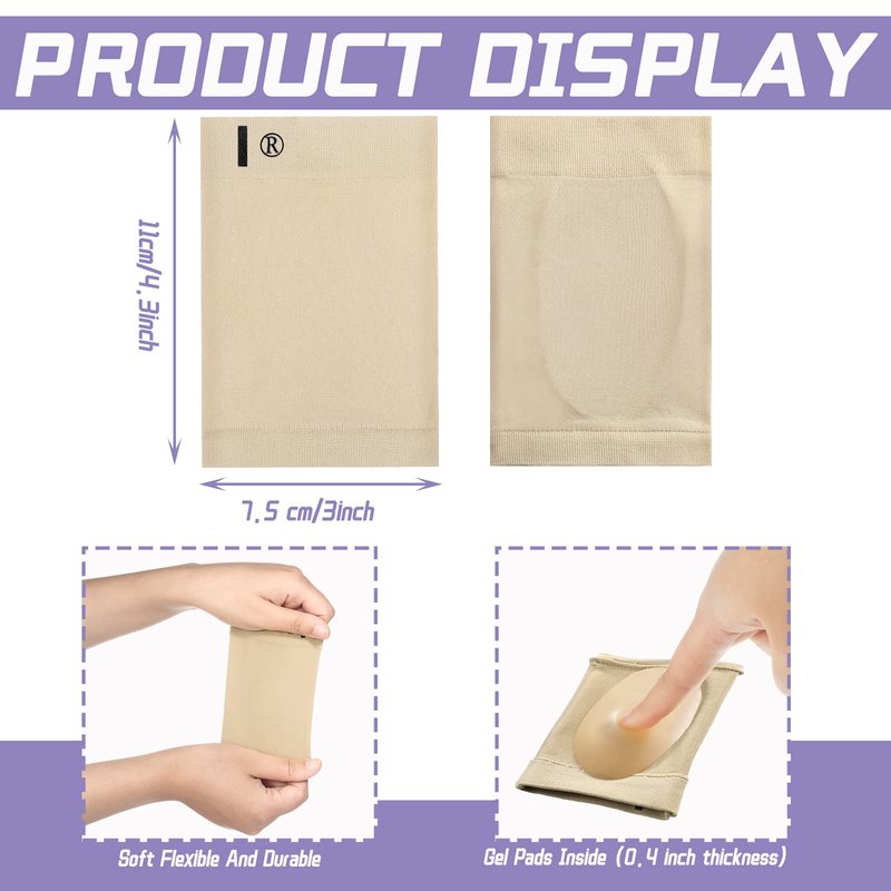 Arch Support Sock 4 Pieces Flat Foot Arch Support Sleeve Cushioned Metatarsal Brace Soft Elastic Arch Foot Brace Gel Pad Inside Feet Brace Plantar Metatarsal Compression Sleeve for Pain Relief (Beige)