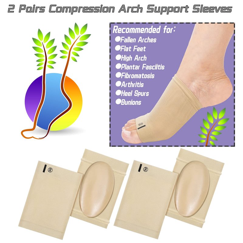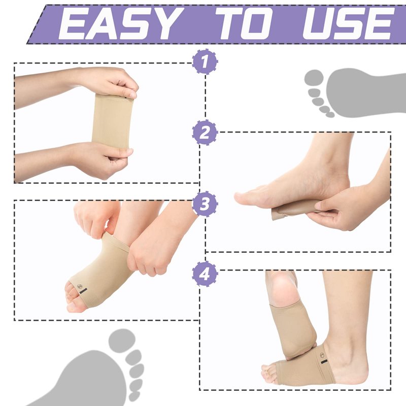 - Simple yet reliable: arch supports for heels are easy to use, simply put on to your feet to combine compression and support directly to the arch of the feet, which is ideal for flat feet or high arches, designed to solve many foot problems