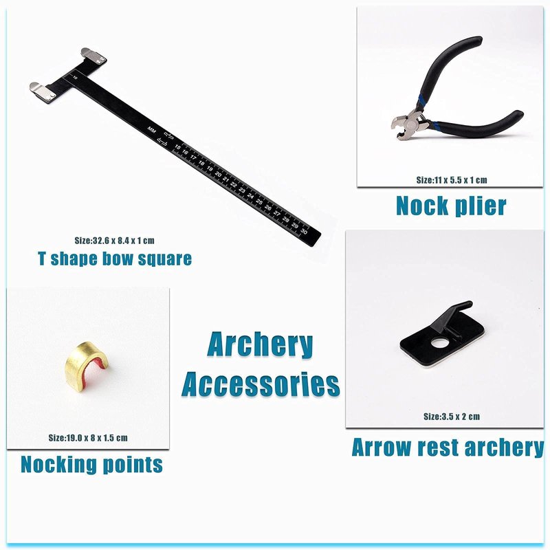 - BOW TURNING KIT ARCHERY: Archery nocking buckle plier, T shape bow square, Bowstring nock points, Plastic Archery Recurve Bow Arrow Rests .Great archery bow maintenance accessories and archery tools,works on longbow, recurve bow and compound bows.