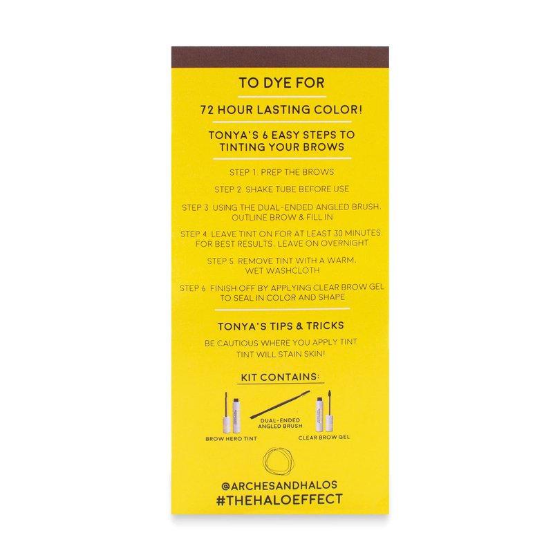 - FOR FLAWLESS BROWS. Arches & Halos Brow Hero Tint Kit comes with brow hero tint, a dual ended angled brush and clear brow gel - everything you need to add beautiful pigment and shape brows