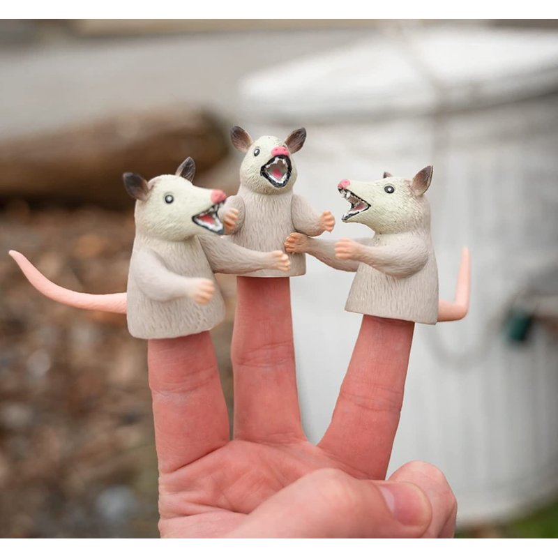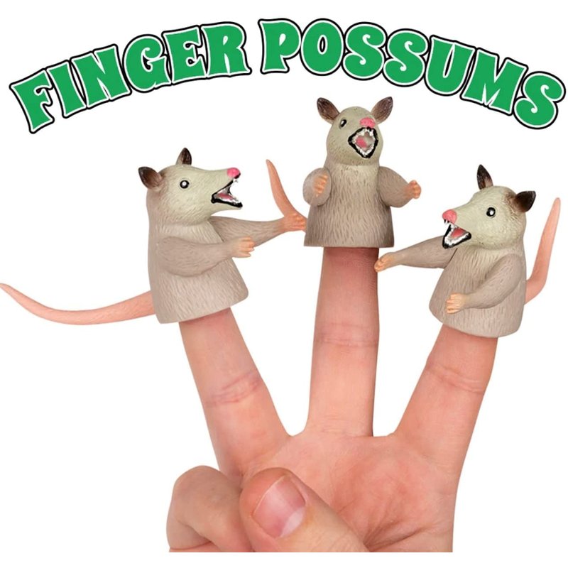 Archie McPhee - Perplexing Possum Perfection Pack - Air Freshener, 3 Finger Puppets and Stress Ball - Set of 5, 2 inches