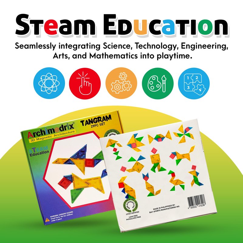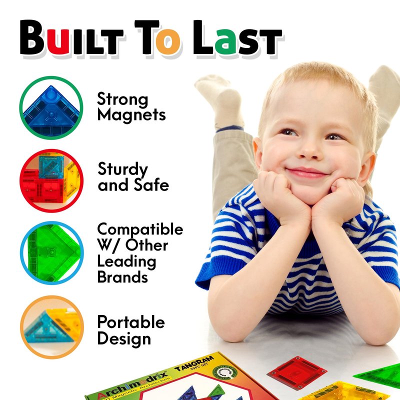 Archimedrix - Tangram Magnetic Tiles Building Blocks, Lightweight Magnetic Building Blocks, Phthalate and Lead-Free Magnet Blocks, Durable Pattern Blocks, 29 Pieces