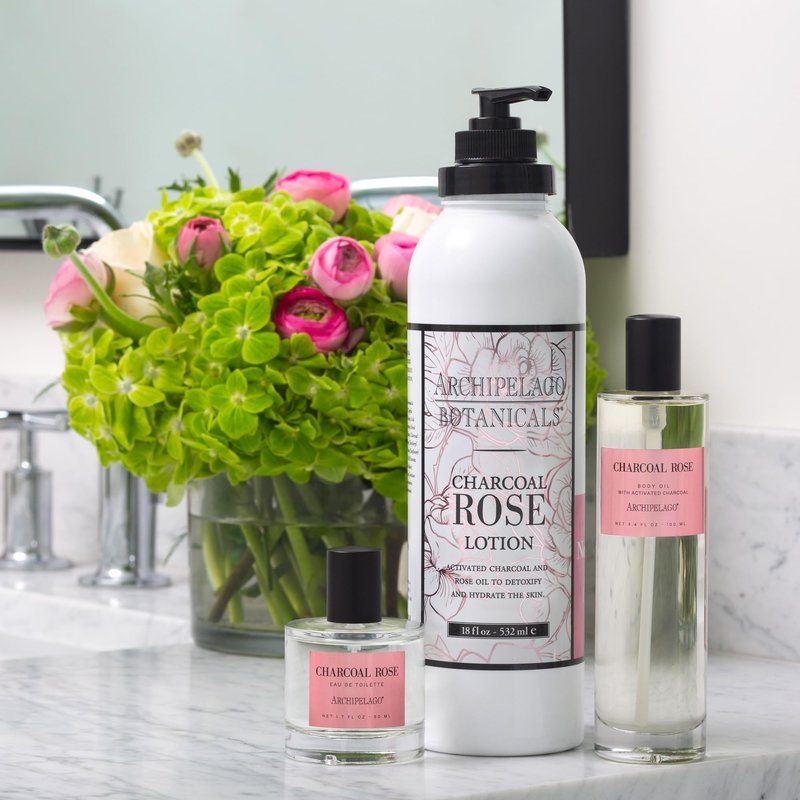 Archipelago Botanicals Charcoal Rose Lotion, Hydrating Lotion for Soft and Healthy Skin, Scented Body Lotion Free from Parabens, Phthalates and GMOs (18 oz)