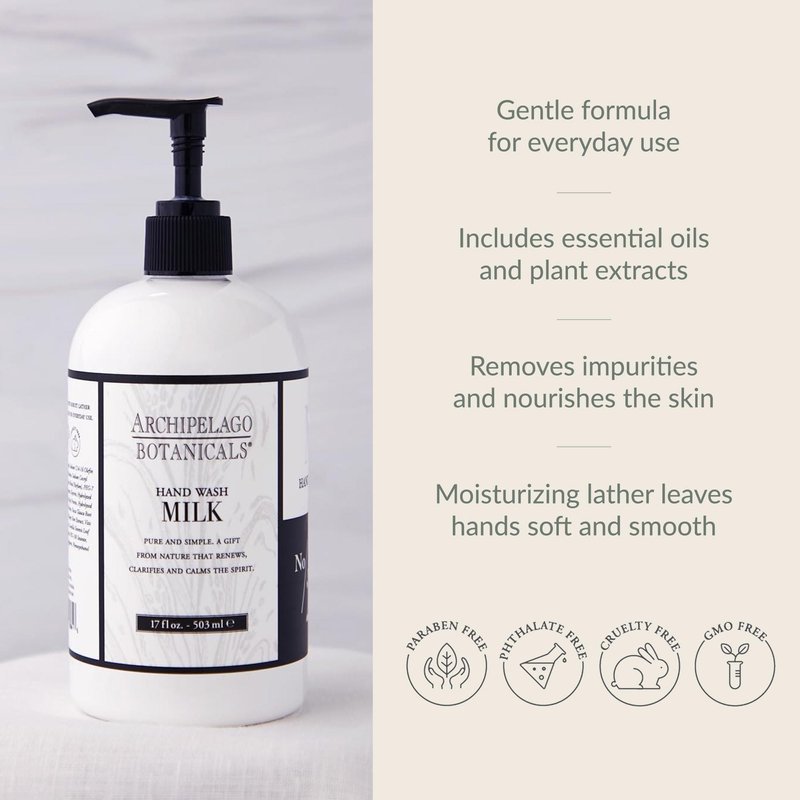 Archipelago Botanicals Hand Wash Milk Liquid Hand Soap, Moisturizing Daily Hand Wash with Soap Pump, Kitchen or Bathroom Hand Soap, 17.0 Fl. Oz.