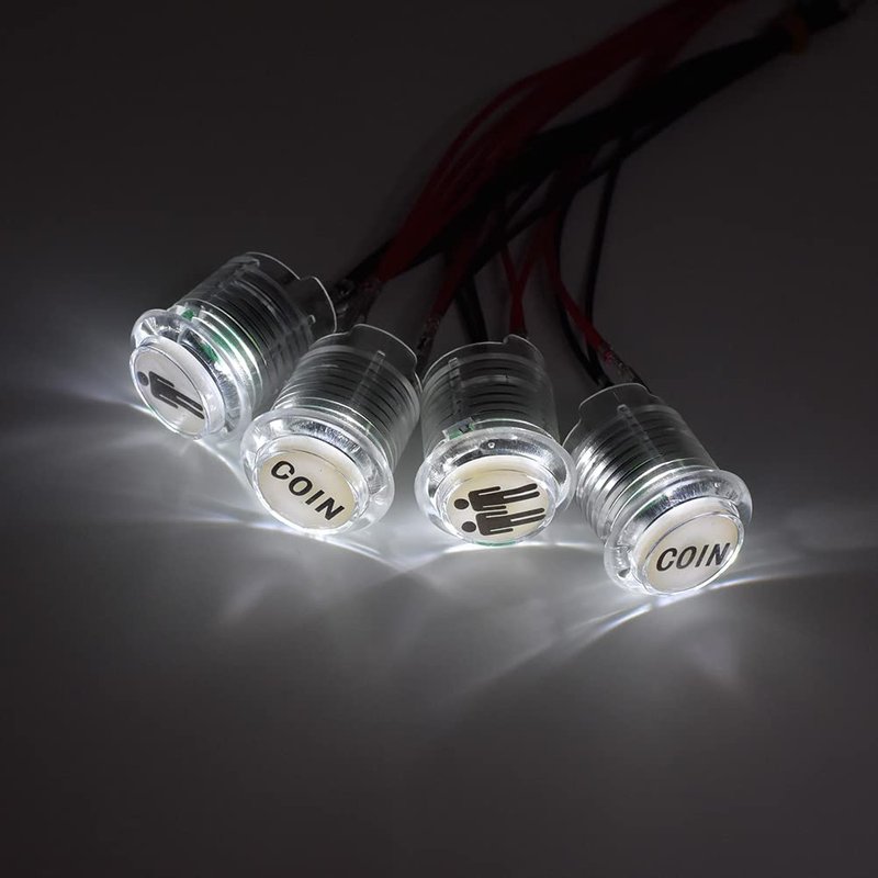 Arcity 4 Pcs/Lot 24mm Arcade LED Push Buttons Illuminated Player 1P 2P Coin Lit with Microswitch for Arcade Machine Games Console Parts 5V White New