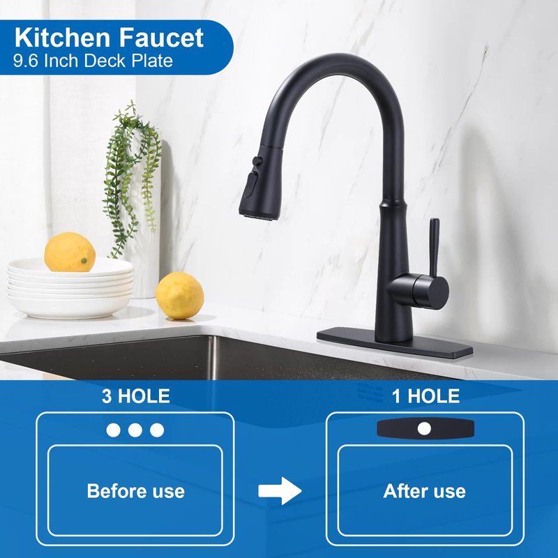 - 【Sturdy & Durable】Kitchen faucet deck plate with sturdy and durable stainless steel construction, ensuring quality and longevity.Sink hole covers in matte black finish are resistant to fingerprints, water damage and corrosion and nicely match your matte black kitchen faucet.