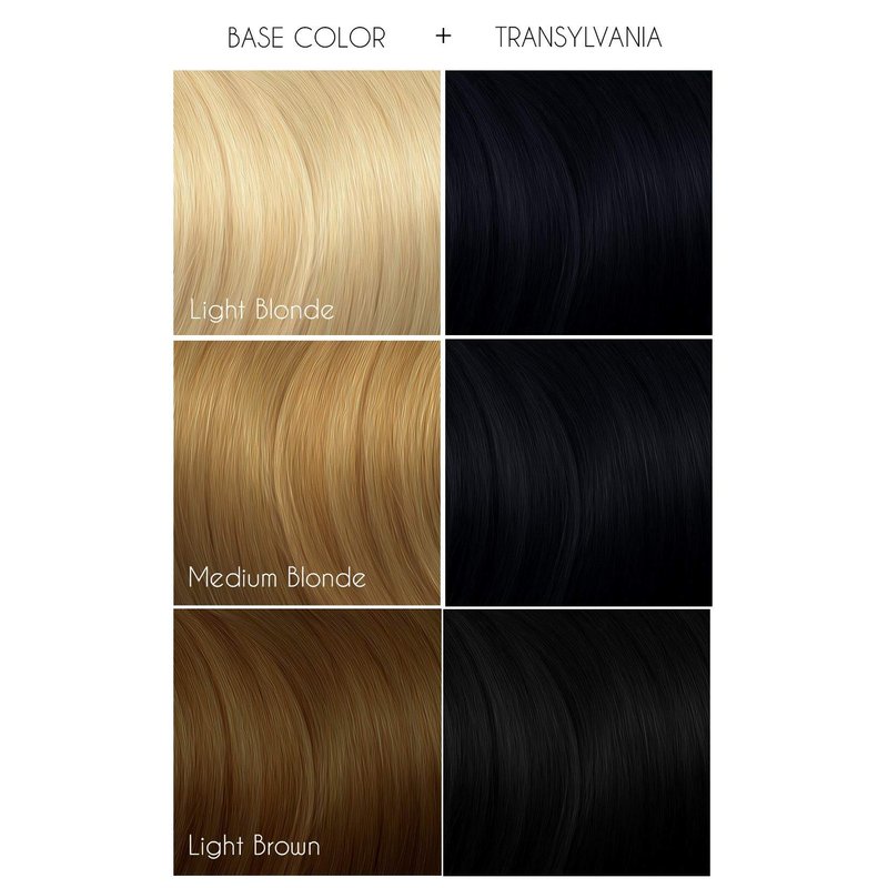 - Raven wings, stormy night skies, and hair as black as your heart - Transylvania is the perfect fit for achieving all your darkest dreams. This primarily blue-based jet black will take well to a variety of base hair colors but will show as the darkest, truest black on hair lightened to around a level 7 or lighter.