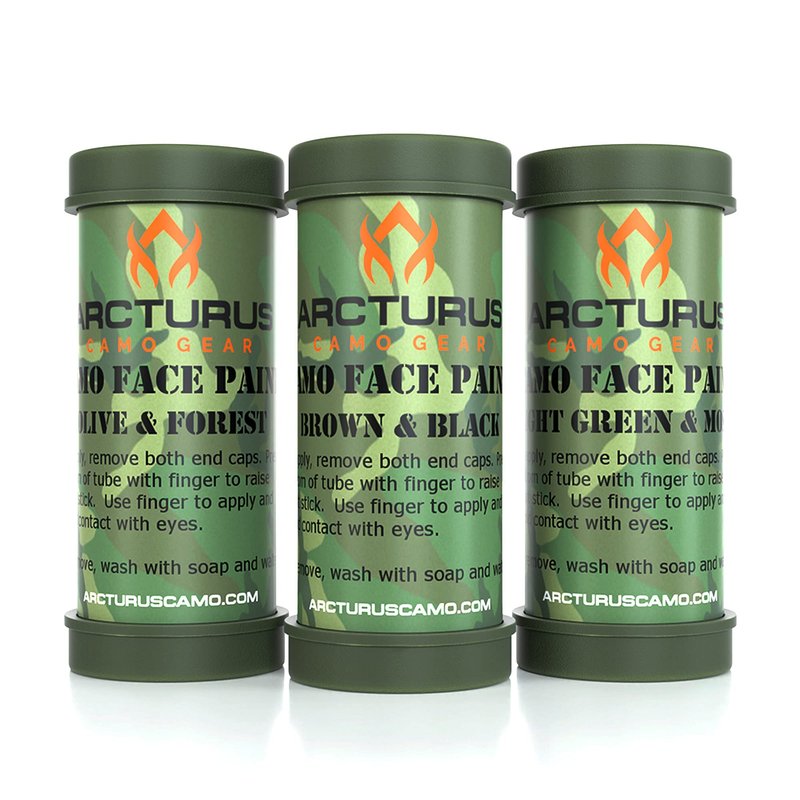 Arcturus Camo Face Paint Sticks - 6 Camouflage Colors in 3 Double-Sided Tubes | Compact Camo Concealment for Hunting, Paintball, Airsoft or Military Use