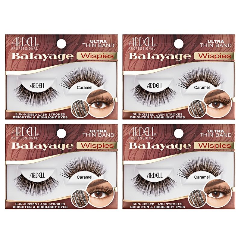 - Sun-kissed Balayage Wispies: Ardell’s all-time favorite wispies boosted with a modern, balayage shade. Made with extra-long fibers stacked to total volume. Adds glamour without looking overdone. Crafted with a flexible band for long-lasting wear.