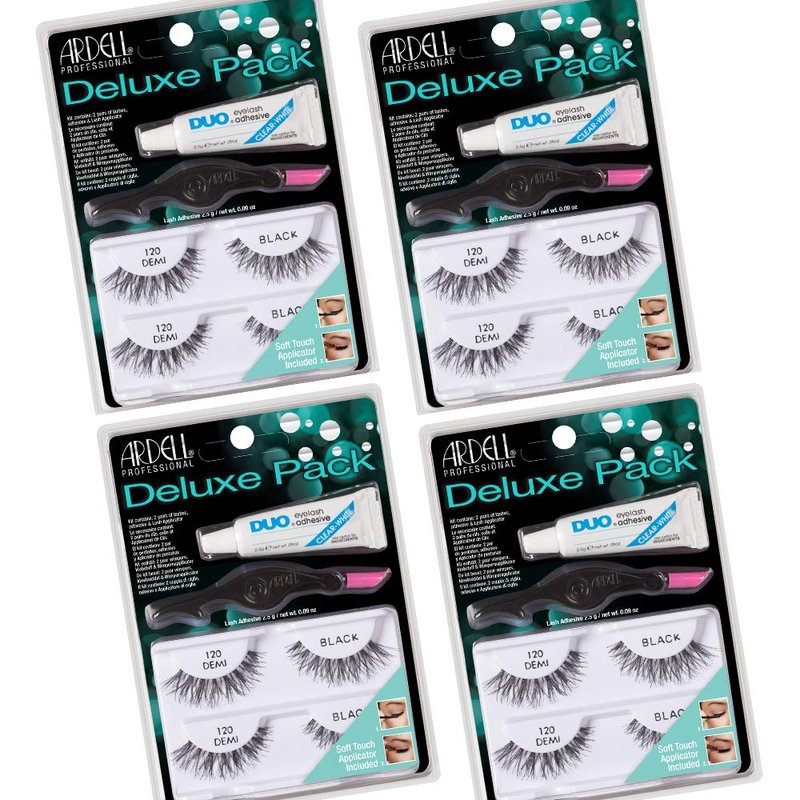- ALL-IN-ONE, PRO APPROVED LASH PACK: Want to get into the falsies world but aren't sure where to start? Your search is over! Deluxe Kit comes with all the products you need to get instantaneously fuller, plusher lashes. Here comes the Ardell Deluxe Pack 120 Lash Kit with the World's #1 Lash Adhesive and World's Best Selling Lashes available together! The Deluxe Pack features a professional quality twin set of glamorous Ardell Demi 120 Fake Lashes, DUO adhesive, and soft-touch lash applicator.