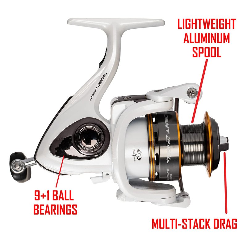 Ardent Arrow 5.0:1 Spinning Fishing Reel - Left or Right Hand White / Orange, 2000