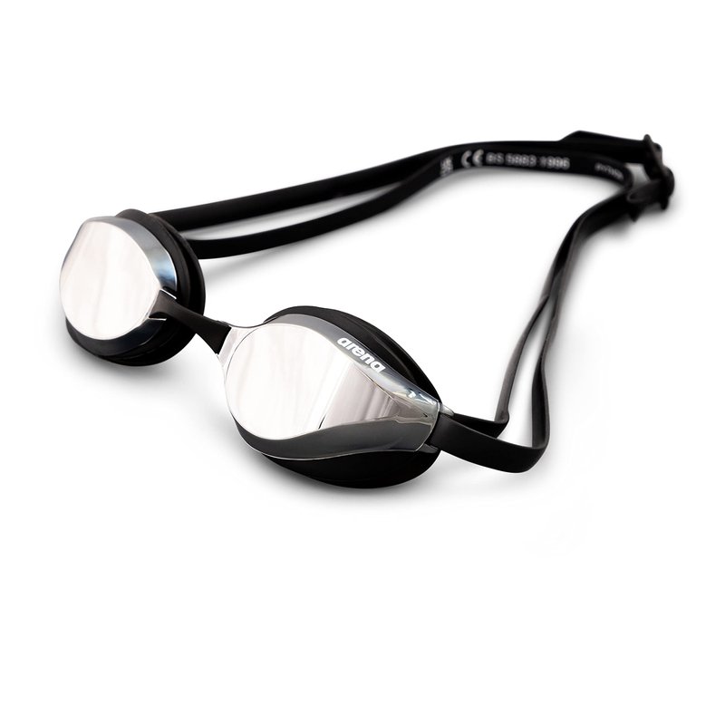 Arena Python Racing Swim Goggles for Men and Women, UV Protection, Anti-Fog, Dual Strap, Mirror Lens, Silver/Black