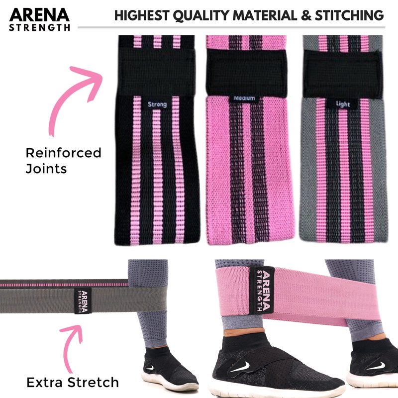 Arena Strength Fabric Exercise Booty Bands for Legs and Butt | Hip Resistance Bands Set of 3 with Workout Guide and Carry Case