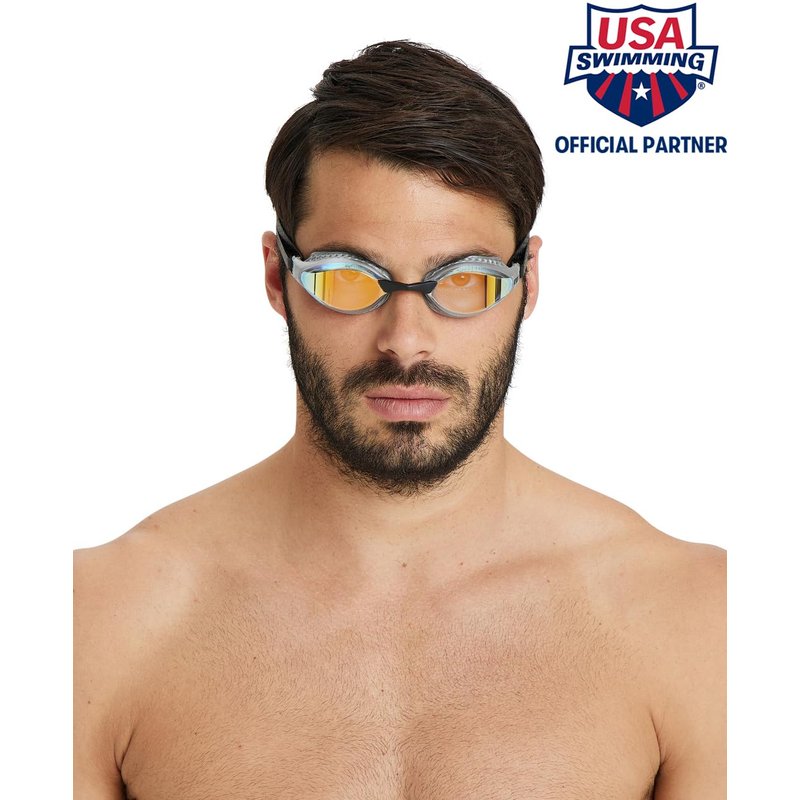 ARENA Unisex Adult Air-Speed Anti-Fog Racing Swim Goggles for Men and Women Special Air Seals Technology Mirror Lens, Yellow Copper/Silver