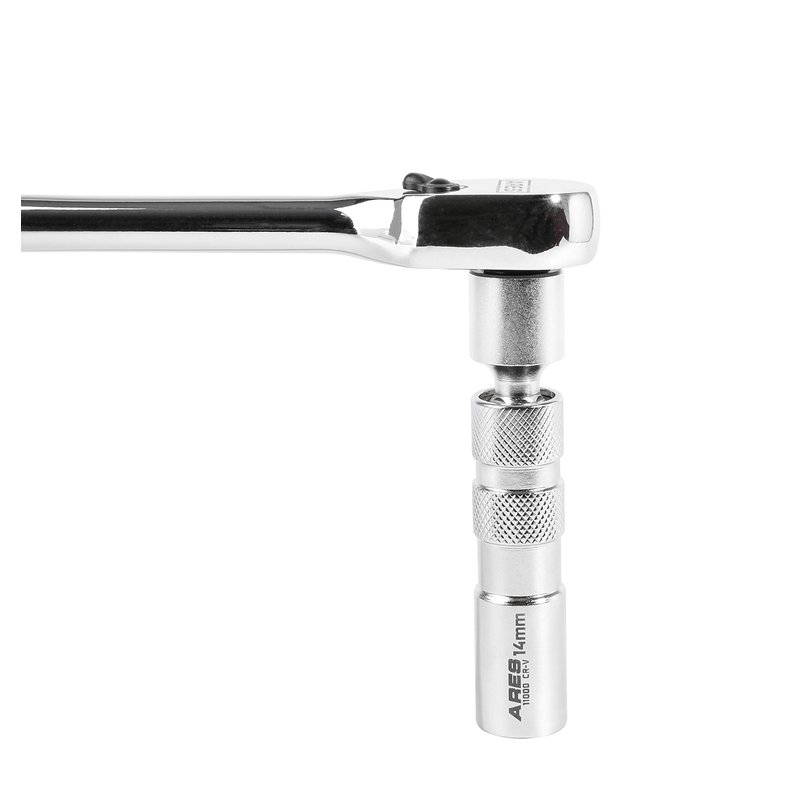 ARES 11000-14mm Thin Wall Magnetic Swivel Spark Plug Socket - 3/8-Inch Drive 12-Point Spark Plug Socket - Walls 2mm Thinner Than Standard Spark Plug Sockets