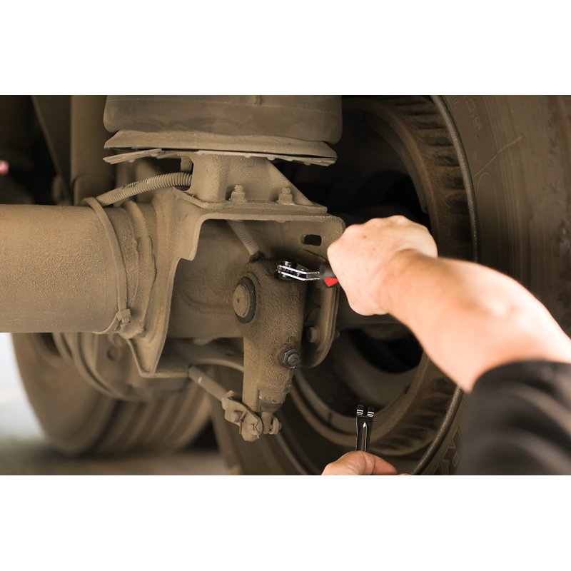 - APPLICATIONS: This set’s fork end tool fits securely under the brake system’s pull pawl, allowing for hands-free operation perfect for owner-operators looking to service their own trucks. These tools hold the system’s tensioner release system and adjust the brakes safely, avoiding damage caused by other tools’ excessive prying force.