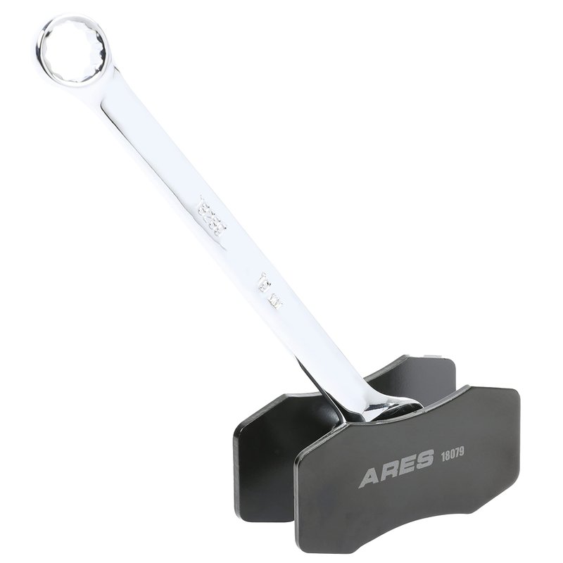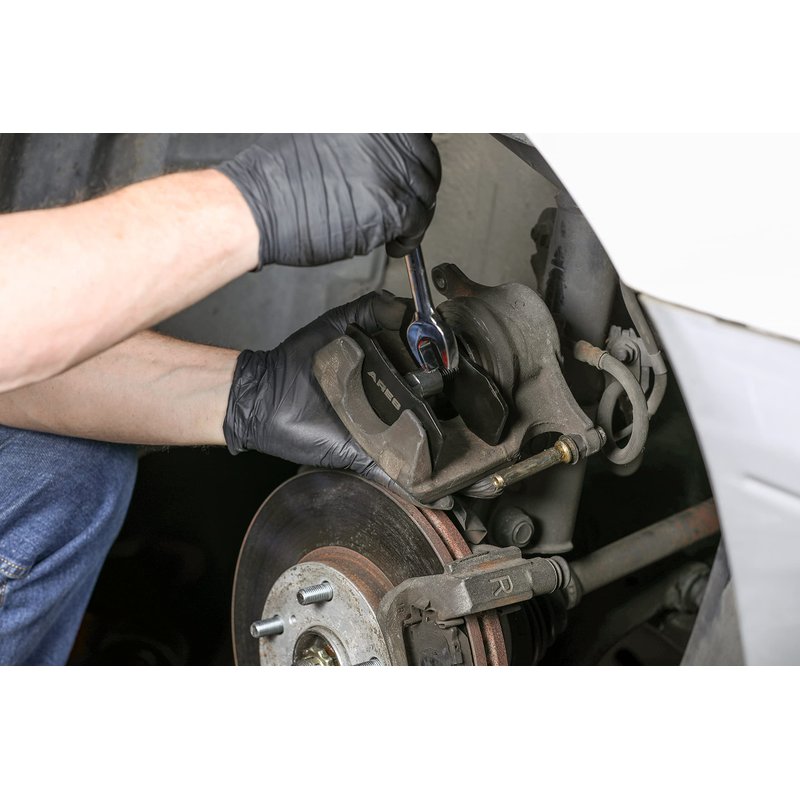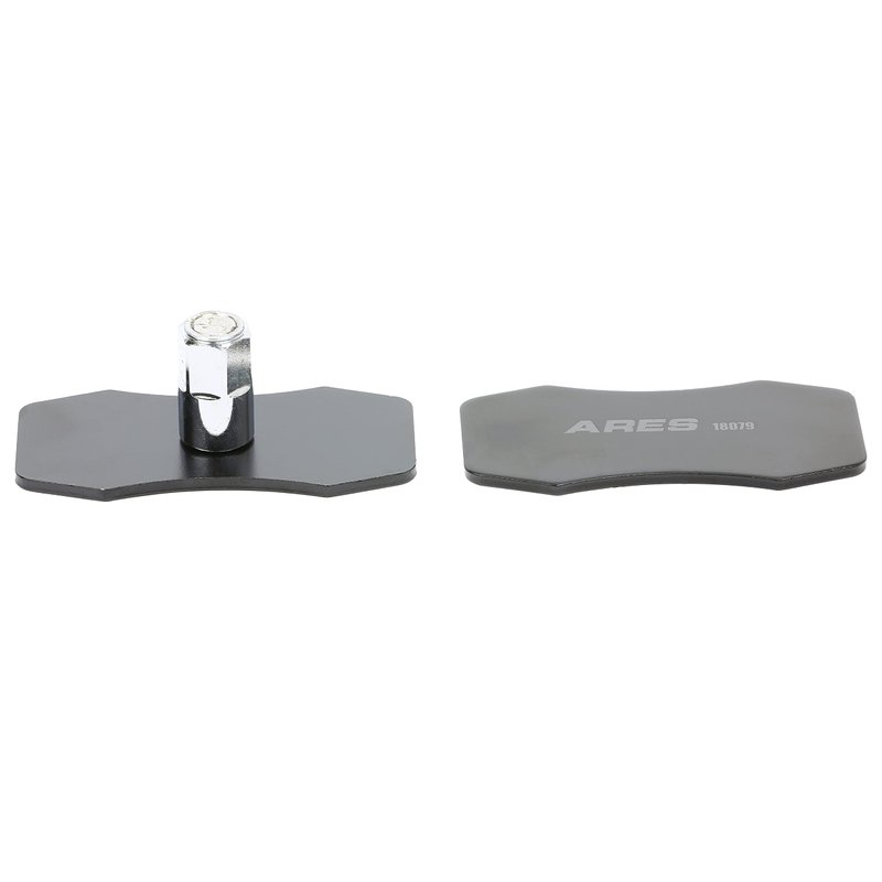 Universal Design for Use with Most Cars and Light Trucks The ARES Universal Brake Pad Spreader offers broad coverage for brake pad service on both fixed and floating single, twin, and quad piston calipers. With plates measuring 2-1/8 inches in width and 4-3/8 inches in length, carbon steel construction with black phosphate coating, and chrome plating on its center adjuster, this adjustable brake pad spreader’s universal design makes it suitable for most cars and light trucks. The 3/4-inch hex shank at the center of the tool offers 360-degree access, allowing for operation even in confined or partially obstructed spaces and offering the potential for ratcheting capabilities with a 3/4-inch ratchet wrench, open end wrench, or an adjustable wrench at a lower cost than many popular ratcheting models. NOTE: Ratchet wrench not included with this tool. Features: Includes: 1pc. Universal brake pad spreader Designed to compress single, twin, and quad pistons on fixed and floating calipers Spreader plates measure 2-1/8 inches in width and 4-3/8 inches in length Minimum expansion of 1.67 inches and a maximum expansion of 2.625 (2-5/8) inches Can be used with a 3/4-inch ratchet wrench, open end wrench, or an adjustable wrench for quicker and easier compression Compact 360-degree design of hex shank allows for use in narrow or confined spaces Carbon steel construction with black phosphate coating and chrome plating on center adjuster Universal design compatible with most cars and light trucks