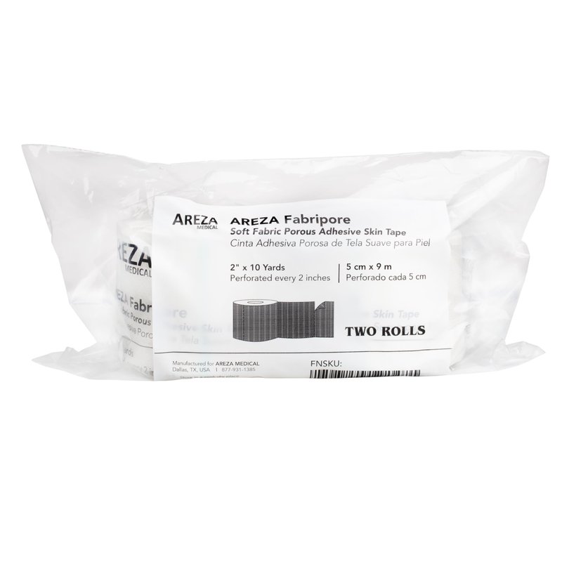Areza Medical Surgical Tape - Porous Skin Soft Fabric Cloth Adhesive Tape - Fabripore - 2" x 10 yds. (5 cm x 9 m) - 2 Rolls per Box