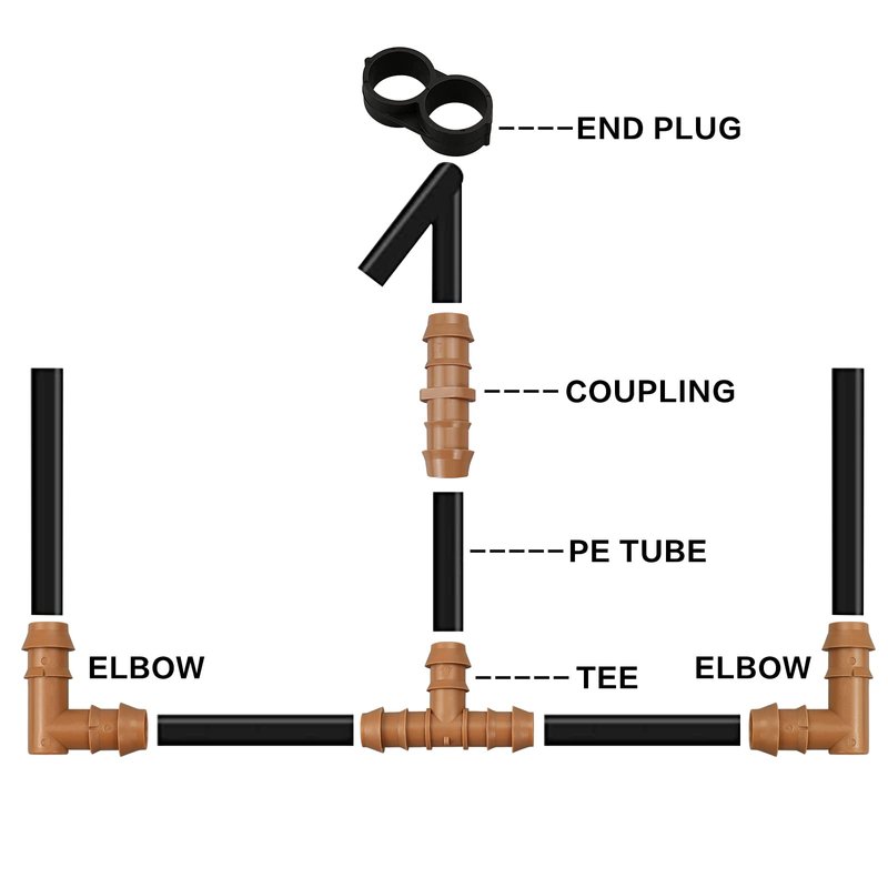 - Upgrade Great value: Package includes 10 pieces barbed Couplings,6 Tees,6 Elbows and 6 Tubing End Closure