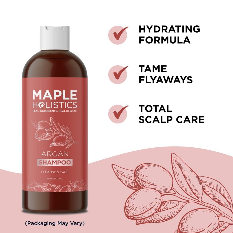 Maple Holistics Argan Oil Shampoo is an incredibly nourishing hair cleanser that is great for the whole family. This family size 16 oz bottle is great for all the Men, Women, Teens, and Kids in your house. This shampoo is specially formulated to moisturize, condition, strengthen, and fortify dry and damaged hair.The Morrocan Argan Oil used in the formula is high quality; cold-pressed, undiluted and unbelievably hydrating. This shampoo infuses hair and scalp with essential nutrients that strengthen hair and promote hair growth to restore your hair’s health and vibrancy.