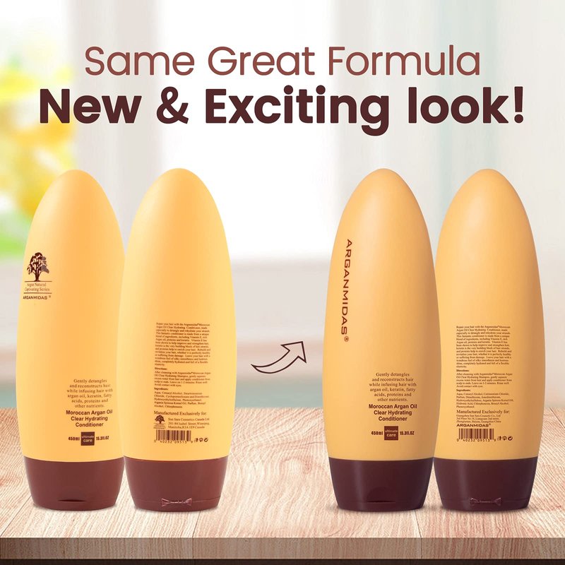 :Repair your hair with the ARGANMIDAS Moroccan Argan Oil Clear Hydrating Conditioner, made especially to detangle and rehydrate your strands.This fantastic conditioner is made from a unique blend of ingredients,including Vitamin E, rich Argan Oil,proteins and keratin.Vitamin E has been shown to help improve and strengthen hair,keratin is the very building block of hair strands,and proteins help to enrich your hair.Rebuild and revitalize your hair,whether it s perfectly healthy or suffering from damage.Leave your hair with a wondrous feel of silky smoothness and lustrous shine,completely hydrated and full of flexible elasticity.