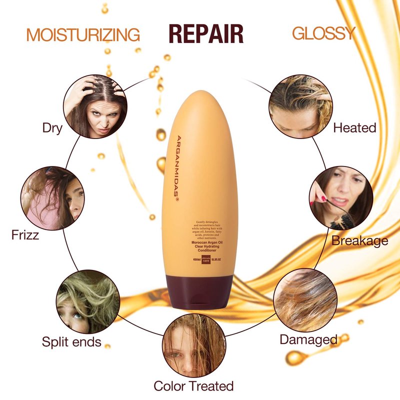 - ➤【HIGH QUALITY INGREDIENTS】: ARGANMIDAS Moroccan Argan Oil Clear Hydrating Conditioner rich in unique natural moroccan argan oil, vitamin E can be deeply immersed in the scalp, supplement nutrition, high moisturizing factor, repair dryness, moisturizing, and unsaturated fatty acids provide antioxidant protection to the scalp
