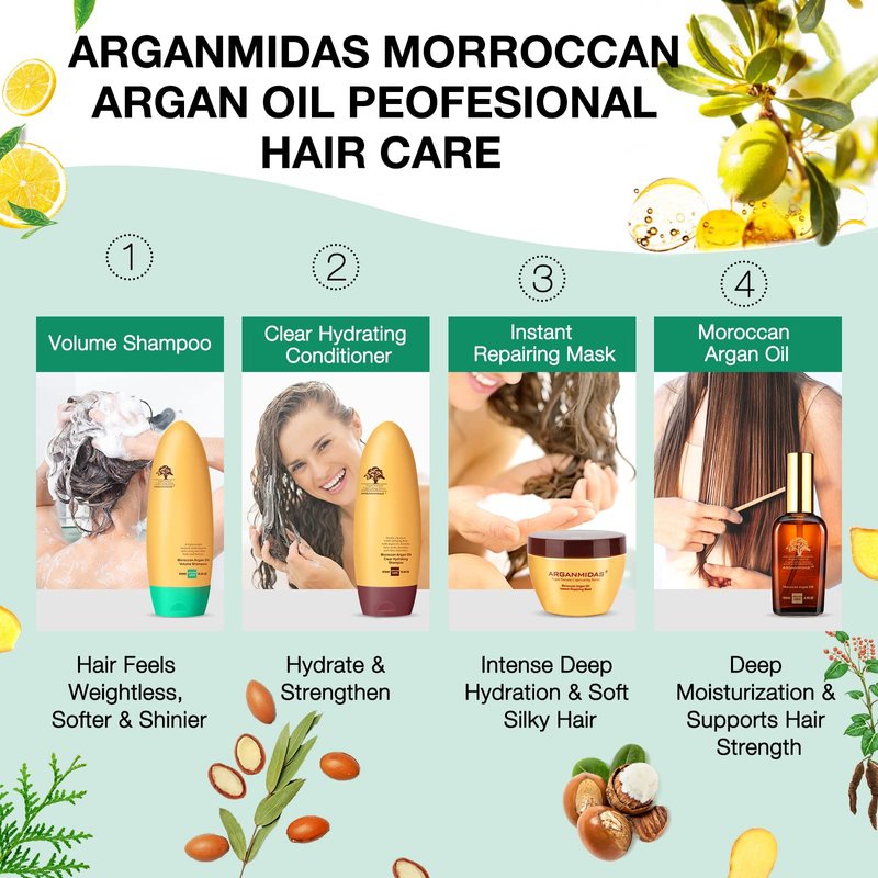 - ▶【BENEFICIAL INGREDIENTS】: ARGANMIDAS Volume shampoo rich in unique natural Moroccan Argan Oil, vitamin E can be deeply immersed into the scalp, supplement nutrition,high moisturizing factor, repair dryness, moisturizing, and unsaturated fatty acids provide antioxidant protection to the scalp