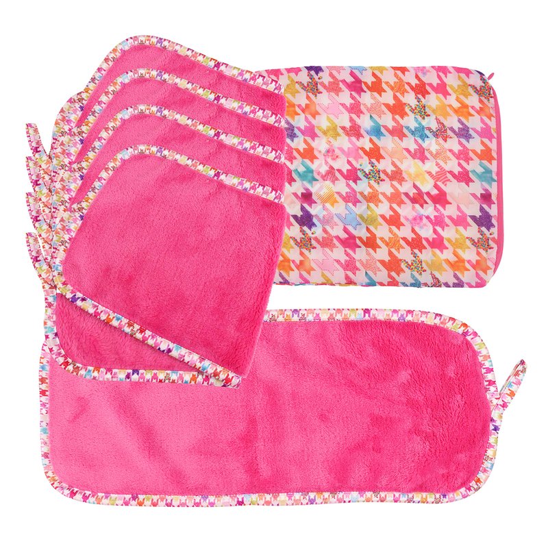 Arkwright Microfiber Makeup Remover Cloths - Pack of 5 - Soft Coral Fleece Reusable Makeup Towels with a Bag, Facial Wash Cloth for Bathroom, 7.5 x 15.5 in, Houndstooth