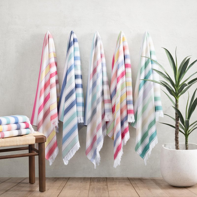 - QUALITY TURKISH TOWEL: Made of 100% Cotton, Sandfree flat-woven quick dry Turkish bath towels shed sand faster than terry beach towels. Oversized Pool Towel available in five fun color variations, collect the Sand Free beach towel set for your next beach day.