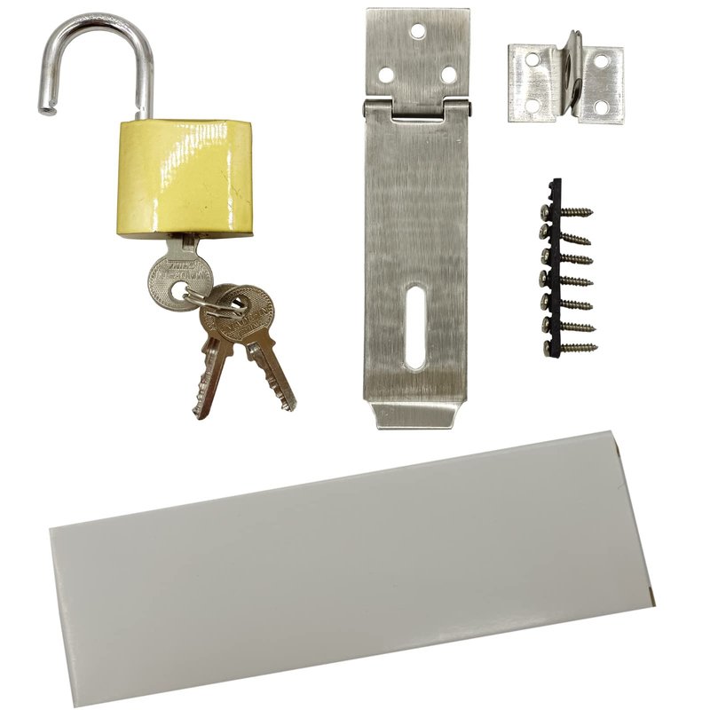 - Padlock hasp set Material: stainless steel latch lock and high quality Iron padlock, shed locks with keys.