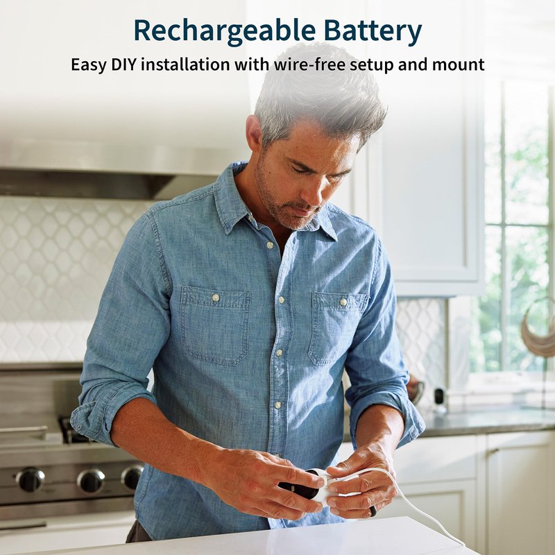- Rechargeable Battery: This WiFi camera has no wiring hassles for DIY install anywhere around your home.
