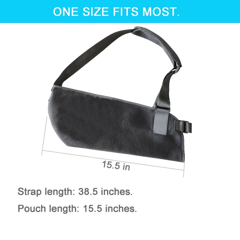 - ADJUSTABLE PADDED SHOULDER STRAP - An adjustable, padded shoulder strap supports a cradling pouch for a comfortable, personalized fit that holds your arm in place to minimize motion. Featuring a convenient buckle at the strap that is easily manageable with one hand, lets you comfortably go about your day on the road to 100%.