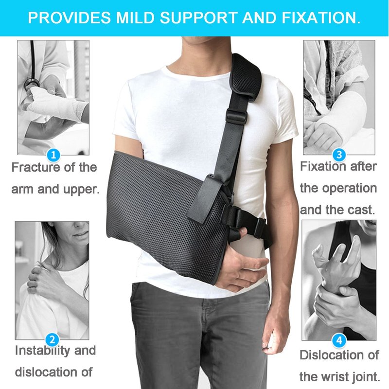 - ERGONOMIC SUPPORT FOR MAXIMUM COMFORT - Ergonomic design takes weight off your arm to help reduce fatigue, provides mild support for sprains and post-surgery recovery. Soft padding around the shoulder makes it more comfortable and the thumb loop holds your hand in the ideal position for healing.