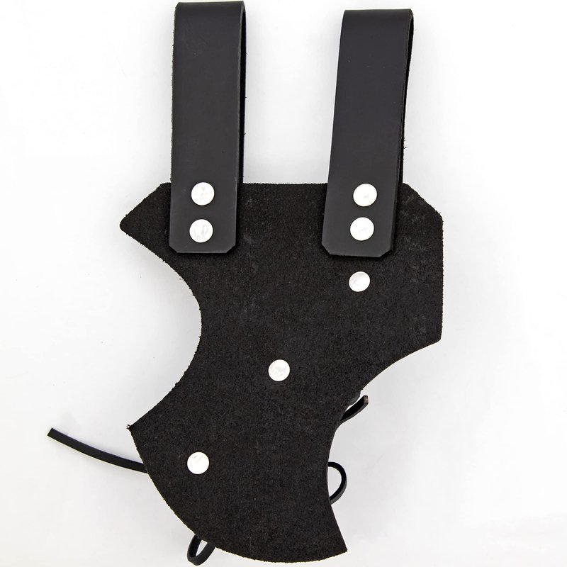 Prepare to be transported back in time to a world of medieval splendor when you complete your renaissance attire with one of our handmade sword frogs. These weapon holsters are hand-crafted from genuine rawhide leather and are designed to last a lifetime. This exceptional piece features two 3.25-inch belt loops so you can attach this frog to almost any belt. The belt loops as well as the diagonal sword sheath are securely attached to the base of the frog using sturdy steel riveting. The slender design of the sheath is made to accommodate swords such as rapiers and sabres, however the ingenious lace-up closure allows versatility so you can easily adjust the opening to fit a variety of weapons to wear at your side. Elevate your ensemble with our universal leather sword frog available in black to perfectly match your costume. This frog is designed to be worn on the left side for right-hand draw. With our leather frog, you can push your performance to the next level as you fight in vigorous LARP reenactments, cosplay adventures, or theatrical productions! The possibilities are endless.