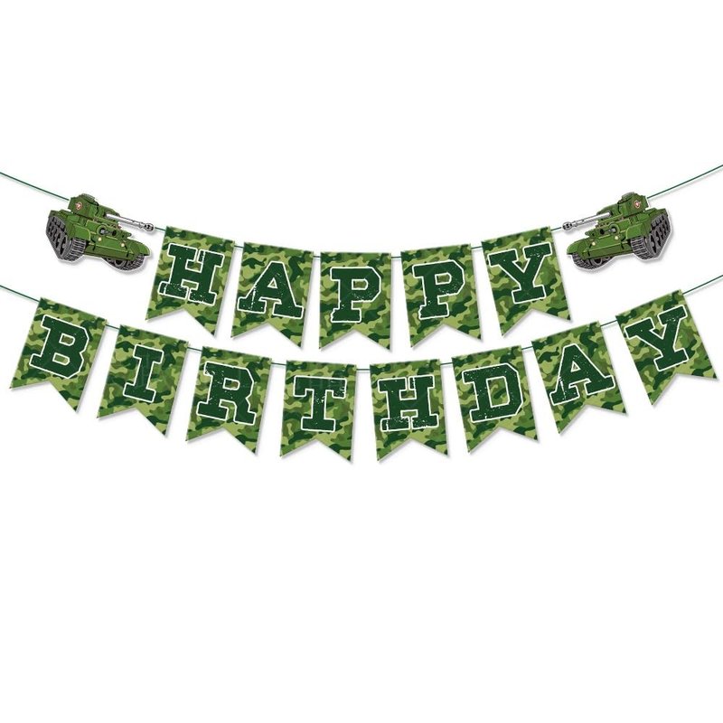 - ♥【You will receive】:You will receive 1 Camo Happy Birthday Banner 9 Camo military equipment hanging swirls, these quantities are enough for you to decorate your Army theme party.